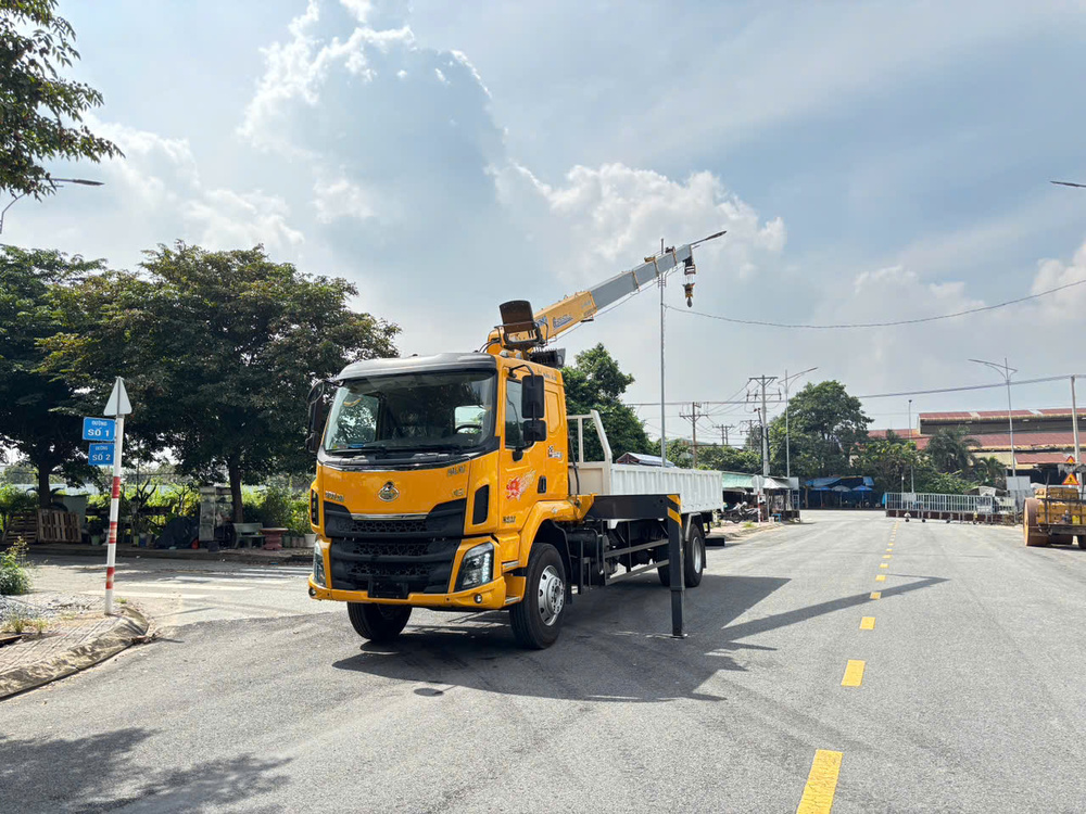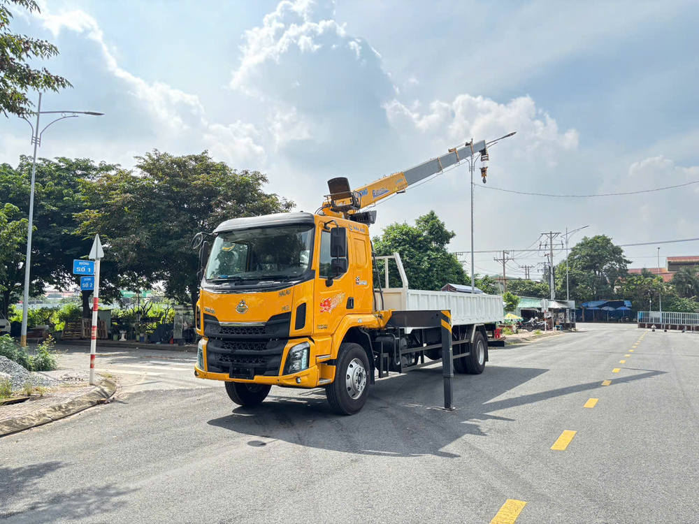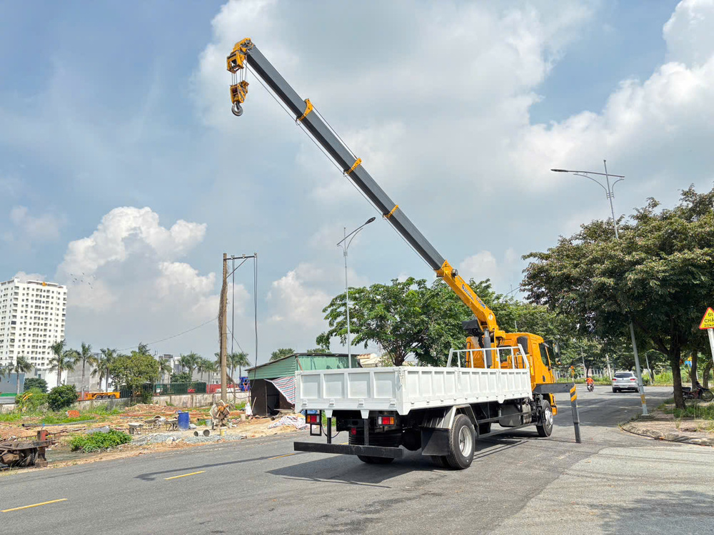 Điểm nổi bật của mẫu xe này nằm ở hệ thống cẩu XCMG SQS157TL-5, một trong những dòng cẩu tự hành được sử dụng khá phổ biến hiện nay. Cẩu có khả năng nâng hạ hàng hóa với sức nâng lớn và tầm với xa, phù hợp cho việc bốc dỡ vật liệu xây dựng, sắt thép hay thiết bị công nghiệp. Thiết kế cần cẩu dạng ống lồng nhiều đoạn giúp việc thu – vươn cần diễn ra nhanh chóng, từ đó tăng hiệu suất làm việc đáng kể tại công trình.