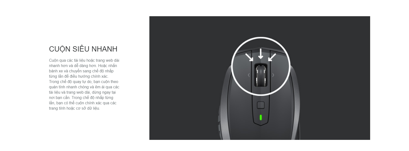| Bánh xe cuộn: | Cuộn siêu nhanh, từ cuộn chính xác đến cuộn tự do bằng một cú nhấp. |