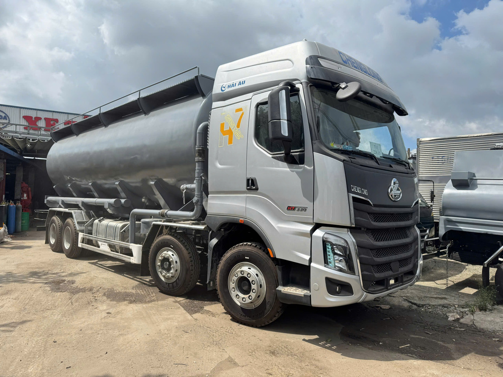 Nhìn tổng thể, Chenglong H7 bồn chở cám 28 khối mang dáng dấp của một chiếc xe tải nặng hiện đại như cabin cao, đầu xe lớn, tạo cảm giác khá “đầm”. Không phải kiểu thiết kế cầu kỳ, nhưng nhìn vào là thấy chắc chắn và đáng tin. Bên trong cabin cũng vậy – không quá sang, nhưng đủ dùng và đủ thoải mái để tài xế chạy đường dài. Với những chuyến đi hàng trăm cây số mỗi ngày, sự tiện nghi vừa đủ này lại trở nên rất giá trị.