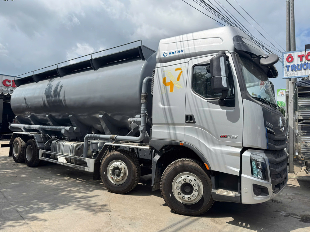 Phần đầu xe bồn chở cám 28 khối được làm khá gọn gàng so với kích thước tổng thể, giúp giảm lực cản gió khi chạy tốc độ cao. Điều này không chỉ giúp xe vận hành ổn định hơn mà còn góp phần tiết kiệm nhiên liệu khi đi đường dài.