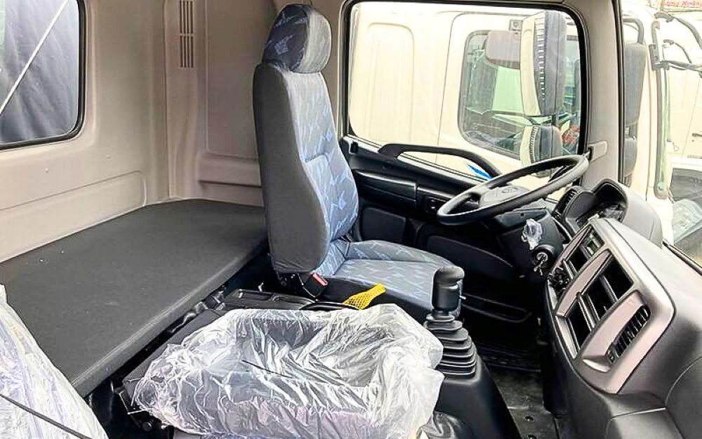 Cabin của Hino FG được thiết kế khá rộng rãi so với nhiều dòng xe cùng phân khúc. Ghế ngồi có độ êm vừa phải, giúp tài xế cảm thấy thoải mái hơn khi lái xe trong thời gian dài. Khoảng trần và khoảng để chân cũng được bố trí hợp lý, phù hợp với vóc dáng của nhiều tài xế tại Việt Nam.
