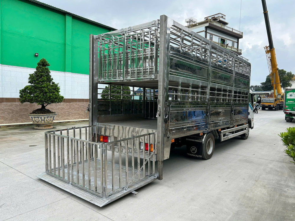 Thùng xe được thiết kế với các khe thoáng giúp lưu thông không khí tốt. Thành thùng chắc chắn, đảm bảo an toàn khi chở số lượng lớn gia súc. Sàn thùng chống trượt giúp hạn chế té ngã cho heo khi xe di chuyển. Ngoài ra, hệ thống thoát nước giúp việc vệ sinh trở nên dễ dàng hơn. Đây là yếu tố quan trọng trong việc duy trì vệ sinh và chất lượng vận chuyển.