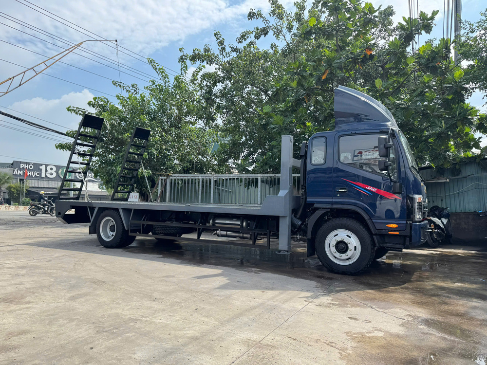 Khác với xe tải thùng thông thường, Jac N900 nâng đầu chở xe máy công trình được định hướng rõ ràng cho việc chở máy xúc mini, máy đào, máy lu nhỏ,... Thùng xe được thiết kế dạng sàn thấp, chắc chắn, dễ lên xuống. Nhờ vậy, quá trình vận chuyển máy móc trở nên gọn gàng và an toàn hơn, không cần chế thêm nhiều phụ kiện rườm rà.