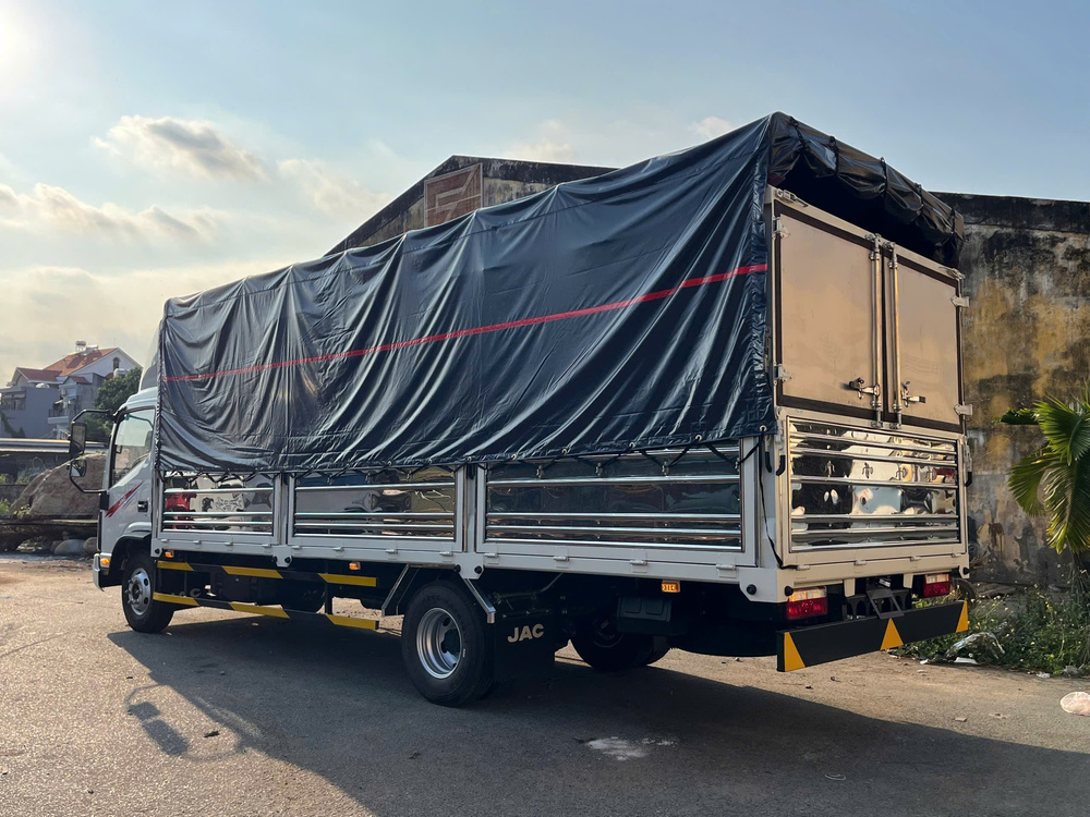 Nhìn tổng thể, JAC N350SL thùng mui bạt được phát triển theo hướng tối ưu cho nhu cầu vận chuyển hàng hóa đa dạng, từ hàng tiêu dùng, thiết bị máy móc cho đến vật liệu nhẹ. Xe sở hữu thùng dài hơn 6 mét 2, giúp tăng đáng kể khả năng chứa hàng trong mỗi chuyến vận chuyển.